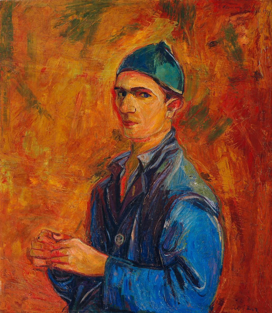 Maximilian Florian, Selbstbildnis mit blauem Arbeitsmantel, 1936-1947, Öl auf Leinwand, 80 x 69,5 cm, Leihgabe der Artothek des Bundes, Belvedere, Wien, Inv.-Nr. Lg 596