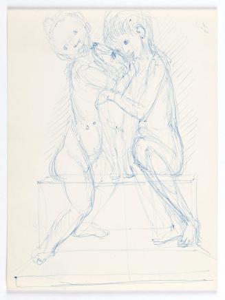 Georg Ehrlich, Zwei Kinder, einen Hund umarmend, undatiert, Kugelschreiber auf Papier, Blattmaße: 18 × 13,7 cm, Belvedere, Wien, Inv.-Nr. 10265/422