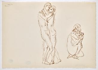 Stehendes Liebespaar und kauernde Figur mit Katze