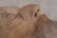 • Depictions of the deceased appear frequently in Klimt’s oeuvre, but are usually not shown to the public due to the highly personal nature of the subject matter. In most cases, the people can be clearly identified. Not so in the case of this portrait, where the identity of the old man has yet to be fully determined and continues to puzzle scholars. Klimt often painted such portraits immediately after death, sometimes on the very day of the subject’s passing. This painting is dated 1900, which may indicate the year of the man’s death. The work was probably cropped, as only a fragment of the original composition is visible today.